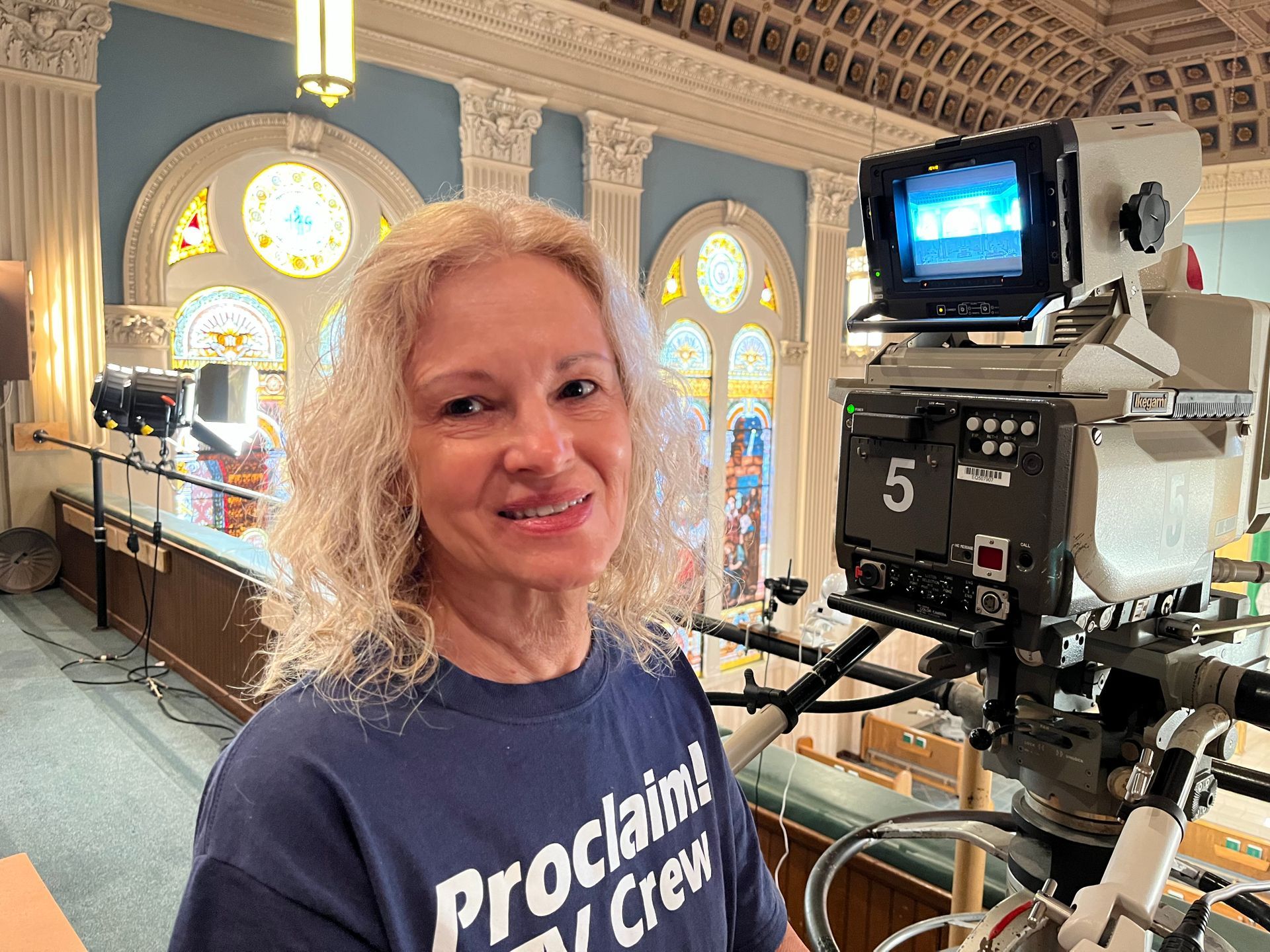 Our volunteers give their time and talent each Sunday, serving as camera operators, graphic and sound techs, program director, satellite engineer, and more. Contributions of many donors have helped purchase the equipment needed. We recently converted our broadcast to a new HD format.